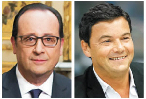 경제살리기를 올해 최대 과제로 내세운 프랑수아 올랑드(왼쪽 사진) 프랑스 대통령이 신년 벽두부터 굴욕을 당했다. 지난해 경제서 ‘21세기 자본’으로 세계적인 반향을 불러일으켰던 토마 피케티(43·오른쪽) 파리경제대(EHESS) 교수가 1일 프랑스 최고권위의 레지옹 도뇌르 훈장을 공개 거부하면서 올랑드 정부를 비판했기 때문이다.