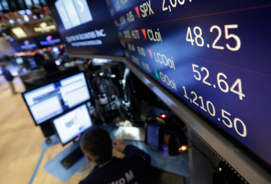 국제유가 급락세 속에서 뉴욕증시가 6일 또다시 하락한 가운데, 이날 뉴욕증권거래소 시세 전광판에 SPX 등 에너지 관련 기업 주식들의 하락세가 게시돼 있다. 6일 서부텍사스산원유(WTI) 2월 인도분 가격이 전날보다 2.11달러 떨어진 배럴당 47.93달러를 기록하면서 50달러선이 붕괴됐다.