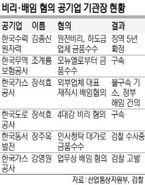 부패·비리 혐의로 검찰의 수사를 받거나 기소된 공기업 사장은 장 사장뿐만이 아니다. 조계륭 전 한국무역보험공사 사장은 가전업체 모뉴엘로부터 금품을 받은 혐의로 지난해 말 구속됐다. 조 전 사장은 모뉴엘의 대표로부터 단기 수출보험과 수출신용보증에 편의를 봐달라는 청탁과 함께 수천만 원 상당의 금품을 수수한 혐의를 받고 있다.