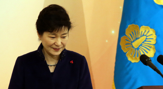 박근혜 대통령이 30일 오전 청와대 영빈관에서 열린 ‘대한민국 공무원상 및 국가시책 유공자 시상식’에서 경제혁신 3개년 계획과 구조개혁을 위해 공무원들이 협조해줄 것을 당부한 뒤 단상에서 내려오고 있다.