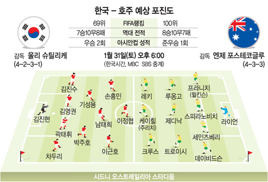 한편 호주도 이번 결승전을 앞두고 팀 케이힐(36·뉴욕 레드불스)의 대표팀 은퇴에 초점을 맞췄다. 호주 매체인 시드니 모닝 헤럴드는 29일 “케이힐이 결승전에서 은퇴 카드를 가슴 속에 품고 경기에 임할 것”이라며 “케이힐이 은퇴 여부를 확실히 밝히지는 않았으나 마지막이 될지도 모른다. 그러나 그는 무엇보다 한국전에 올인할 것이라는 뜻을 밝혔다”고 전했다.