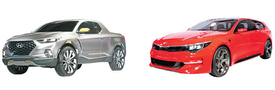 올 들어서도 현대·기아차의 차종 다변화를 위한 시도는 국제모터쇼 등을 통해 계속되고 있다. 현대차는 지난 1월 디트로이트모터쇼에 미국시장을 겨냥해 브랜드 최초의 픽업트럭 콘셉트카인 ‘싼타크루즈’를 내놓고 시장 반응을 살피며 향후 양산 여부를 저울질하고 있다.