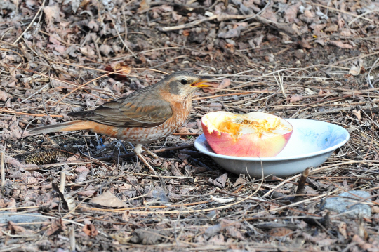 수분이 줄어든 과일은 버리지 말고 정원 나뭇가지에 올려놓으면 새들이 좋아라 하며 다가올 것입니다. 처음에는 낯설어 하겠지만 안심이 되면 딱따구리, 직박구리, 딱새, 까치, 참새 등 다양한 새들의 식사를 볼 수 있습니다.