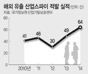 지난해 산업스파이 적발 실적이 사상 최다인 것으로 나타난 가운데 최근 들어서는 새로운 분야에서 산업 기술 유출 사례가 급증하고 있는 것으로 분석됐다. 특히 수법도 점점 다양해지고 있어 대책 마련이 시급한 것으로 지적된다.