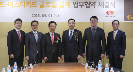 KB국민카드는 핀테크 기반의 글로벌 모바일 결제 서비스 활성화를 위해 지난 1일 마스타카드와 손을 잡았다(사진). 양사는 올해 3분기부터는 카드업계 최초로 모바일 애플리케이션 카드 ‘K-모션’의 해외 온·오프라인 가맹점 결제 서비스를 도입한다는 계획이다.