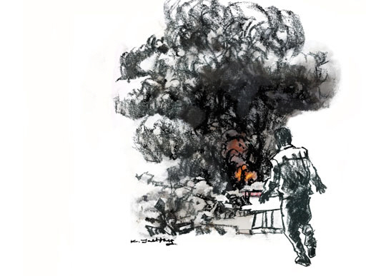 그때였다. 건너편 해상보안서가 갑자기 환해지더니 불기둥을 뿜으며 어두운 하늘로 솟아올랐다. 폭발한 것이다. 건물이 산산조각이 되어서 하늘로 솟아오른다. 다음 순간 폭발음이 울렸다.