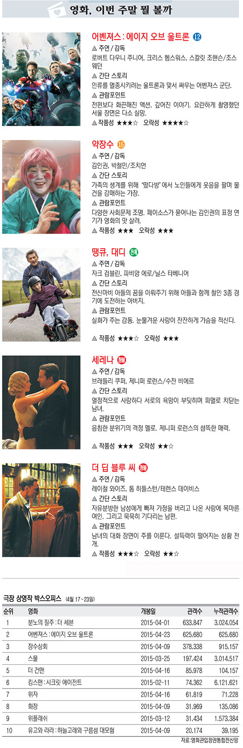 <영화, 이번 주말 뭘 볼까>어벤져스:에이지 오브 울트론