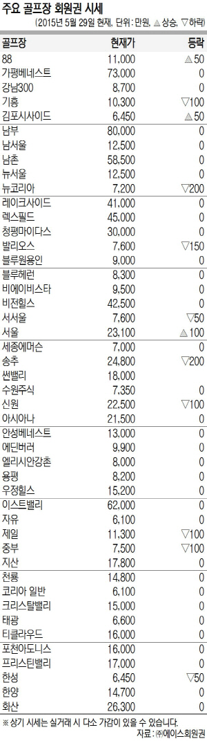 고가권에선 화산이 매물 부족으로 강보합세를 유지하고 있다. 중가권에선 88이 지속적으로 상승세를 보이고 있지만 기흥, 중부, 한성은 매도물량 증가로 하락 중이다. 저가권에서는 덕평과 플라자용인이 거래량을 늘려가고 있지만 매매 공방으로 보합세를 벗어나지 못했다.