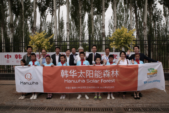 이번 행사는 그동안 그룹이 추진해 온 중국 사막화 방지를 위한 ‘태양의 숲’ 조성 캠페인의 하나다. 행사에는 김영락 한화차이나 상무, 트리플래닛(사회적 기업), 중국 정부 관계자들과 학교 어린이 등 300여 명이 참석했다.