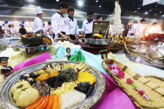 31일 오후 서울 서초구 양재동 aT 센터에서 열린 ‘2015 대한민국 국제요리경연대회’에서 참가자들이 전시된 요리들을 살펴보고 있다.