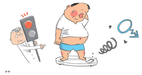 기본 검사를 해보니 체중이 110㎏이고, 혈압은 150/100㎜Hg로 높으며 나쁜 콜레스테롤(LDL) 수치가 160㎎/dl로 높았다. 유리 남성 호르몬은 부족했다.