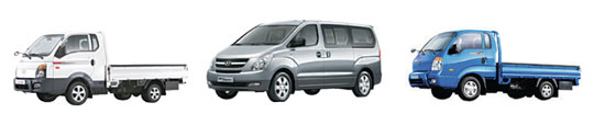 경기불황의 영향으로 대표적인 ‘생계형 차량’으로 꼽히는 현대자동차 ‘포터Ⅱ(이하 포터· 왼쪽 사진)’와 ‘그랜드 스타렉스(스타렉스·가운데)’, 기아자동차 ‘봉고Ⅲ(봉고·오른쪽)’ 등 현대·기아차의 소형 상용차 3총사가 나란히 6월 국산 차 베스트셀링카에 오른 것으로 나타났다.