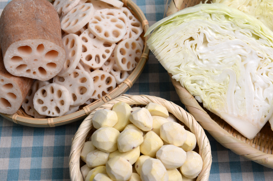 여름철만 되면 유난히 배앓이가 잦은 사람들이 있다. 배앓이는 대부분 포도상구균, 살모넬라균, 대장균 등에 의해 장에 탈이 나서 생기는 장염의 일종으로 설사와 복통, 발열 증상을 동반한다. 특히 장의 면역력이 약한 사람들이 여름만 되면 장염으로 고생한다. 따라서 배앓이가 잦은 사람이라면 평소 장 건강을 신경 쓰며 살아야 한다. 연근, 밤, 양배추(사진 왼쪽부터) 등의 식품은 ‘화이트푸드’로 분류되는데 장의 소화기능을 개선해주고, 장의 면역력도 높여주는 식품으로 유명하다. 주요 성분과 효능을 알아보자.