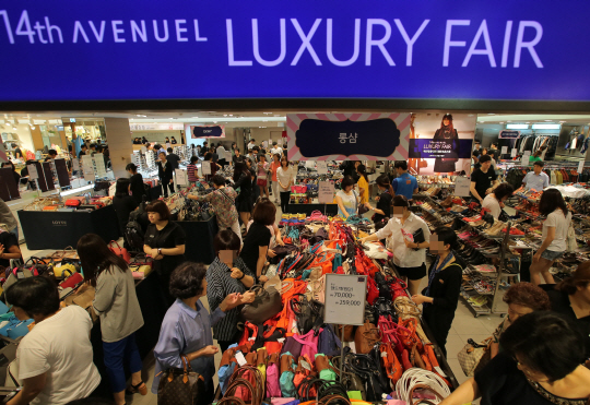 롯데백화점이 역대 최대 규모의 ‘해외명품대전’을 진행하고 있는 가운데 29일 서울 중구 소공동 롯데백화점 본점을 찾은 고객들이 관련 상품들을 살펴보고 있다.