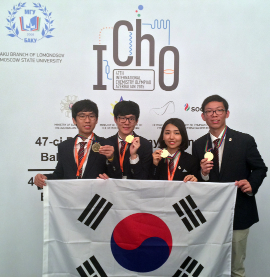 미래창조과학부는 20일부터 10일간 아제르바이잔 바쿠에서 열린 ‘제47회 국제화학올림피아드’에서 한국이 금메달 4개를 수상하며 중국, 대만과 함께 공동 1위를 차지했다고 29일 밝혔다.