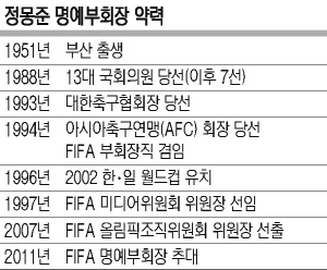 정 명예부회장은 이를 대충 넘기려던 FIFA 집행위원회에서 진상조사와 함께 책임자 문책 등을 요구했고, 최근에도 제프 블라터 회장 등 당시 수뇌부가 손실액을 보상해야 한다고 주장했다. 2011년 FIFA 부회장직에서 물러나기 직전까지도 기존의 관례를 깨고 2018년과 2022년 월드컵 개최지를 한꺼번에 선정하려는 블라터 회장과 대립했다.