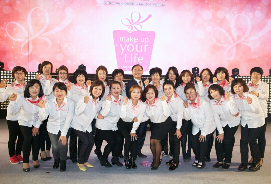 이를 잘 보여주는 게 지난 2008년부터 시작한 ‘메이크업 유어 라이프’(사진). 암 치료 과정에서 탈모 등 급작스러운 외모 변화로 고통받는 여성 암 환자들에게 메이크업 및 피부관리, 헤어 연출법 등 자신을 아름답게 가꾸는 기법을 전수한다. 지난해까지 9221명의 여성 암 환자와 2904명의 아모레 카운슬러가 참가한 대표적인 사회공헌 캠페인이다. 올해도 510명의 아모레 카운슬러가 전문 기법을 전수할 예정이다. 병원 캠페인 외에도 거동이 불편하거나 시간적 여유가 없는 이들을 위해 자원봉사단이 환자의 자택이나 병실을 찾아 봉사한다.