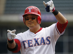 추신수(텍사스 레인저스·사진)가 20일(한국시간) 3차례나 출루하며 5경기 연속 안타 행진을 이어갔다.