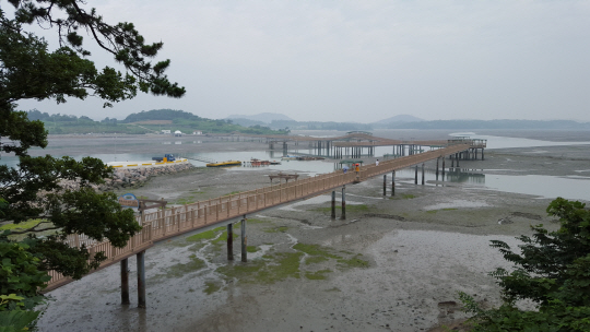 또 인상적인 것은 두 섬을 둘러싸고 있는 광활한 갯벌이다. 썰물 때 통째로 사라진 바다가 밀물 때 다시 나타나는 모습도 눈여겨 볼만하다. 두리∼박지 구간을 건넜던 이 날 오전 10시 30분쯤 다리 밑과 주변은 온통 갯벌이 훤히 드러난 상태였다. 하지만 2시간여가 지나자 섬 주변에는 순식간에 바닷물이 차오르기 시작했다. 인생에서도 비움과 채움이 모두 필요함을 가르쳐주는 듯했다.