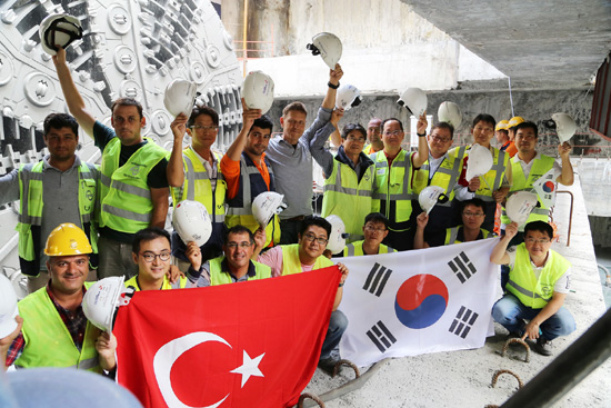 지난해 4월 굴착에 착수해 하루 평균 25t 트럭 100대 분량의 토사를 퍼 올리며 7m씩 굴진한 지 16개월만에 이스탄불 앞바다로 유럽과 아시아 대륙을 가르는 보스포러스 해협을 관통했다.