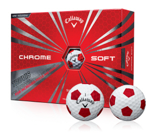 ○…캘러웨이골프는 축구공 무늬 패턴을 적용한 골프공 ‘크롬소프트 트루비스 버전’·사진)을 판매한다. 축구공의 오각형 무늬 패턴을 뜻하는 트루비스는 공이 크게 보이는 시각적 효과가 있다고 캘러웨이골프는 설명했다.