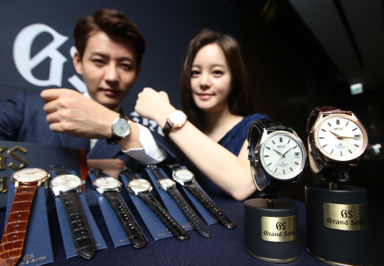 세이코(SEIKO)가 8일 오전 서울 종로구 JW메리어트 동대문스퀘어에서 브랜드 ‘그랜드 세이코’가 탄생 55주년을 맞아 최초 모델이었던 오토매틱 시계 62GS 모델을 현대적으로 리메이크한 ‘히스토리컬 컬렉션 62GS’ 2종을 선보이고 있다.