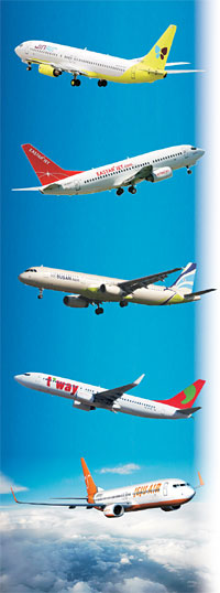 16일 LCC와 자치단체에 따르면 ‘진에어’는 지난 1일 충북 청주∼제주 노선을 1일 8회 운항하는 정기노선 취항을 시작했다. ‘이스타항공’도 3일 청주∼홍콩 정기편(주 2회) 운항에 이어 5일부터 강원 양양∼중국 창춘(長春)·난창(南昌)·타이위안(太原)·우시(無錫)·허페이(合肥)·우한(武漢)·장자제(張家界)·정저우(鄭州)·푸저우(福州) 등 9개 도시를 잇는 전세기를 3개월 동안 운항한다. 또 진에어는 오는 25일부터 양양∼중국 상하이(上海) 운항을 재개하고 양양∼중국 10개 도시 부정기 노선 개설도 추진 중이다. 이스타항공도 10월 26일부터 부산 김해공항∼제주·일본 오사카(大阪)·태국 방콕 노선에 신규 취항할 예정이다.