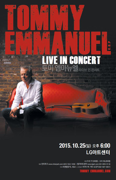 토미 엠마뉴엘은 오는 10월 25일 서울 LG아트센터에서 공연을 펼친다. 이에 앞서 23일에는 부산 소향씨어터에서 한국 팬들과 만난다.