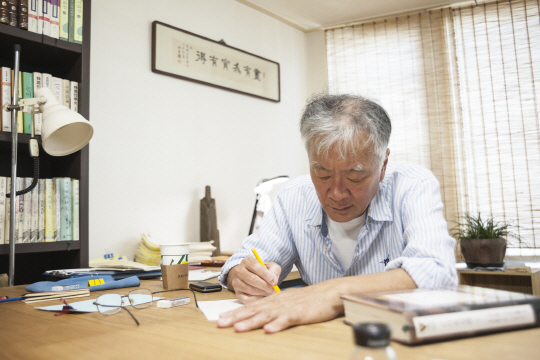 소설가 김훈(67·사진)의 글에서는 노동의 냄새가 난다. 몸으로 부딪쳐 삶의 방식을 체득한 거친 남정네의 모습이다. 쓰는 방식도 여전히 육필을 고집한다. 그는 스스로 “나는 놀기를 좋아하고 일하기를 싫어한다”고 고백하지만, 결코 그냥 놀지 않는다. 발로 또 자전거로 길을 누비고, 멈춰선 곳에서는 힘껏 관찰하고 만지며, 집에 돌아와서는 골똘히 생각하고 문장을 벼린다.