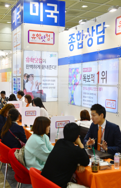 4일 서울 강남구 삼성동 코엑스에서 열린 ‘2015 추계 해외유학·이민박람회’를 찾은 관람객들이 업체별 부스에서 상담하고 있다.