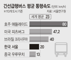 30일 서울연구원의 ‘서울시 BRT시스템 해외도시와 비교평가’ 보고서에 따르면 서울 BRT 정류장의 경우 ‘선(先)지불시스템’(차량 탑승 전 정류장 등에서 미리 요금을 내는 장치)이 구축되지 않아 세계 주요 도시에 비해 차량 통행 속도가 평균 이하에 그치고 있다. 이 시스템은 승·하차 시간을 단축함으로써 버스의 정류장 체류시간을 줄여 통행속도 개선이 가능하다.