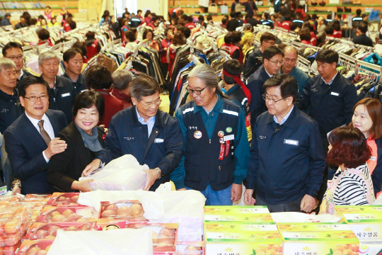 현대중은 4일 최길선 회장과 권오갑 사장, 정병모 노조위원장 등 회사 관계자들과 안효대(새누리당·울산 동구) 의원, 권명호 울산 동구청장 등이 참석한 가운데 ‘제22회 사랑의 기증품 판매전’(사진)을 열었다. 이 행사는 6일까지 계속된다. 이 행사로 얻는 수익금은 불우이웃을 위한 김장 담그기와 청소년 장학금 지원 등에 사용된다. 이번 행사를 위해 현대중 그룹 임직원들은 의류 1만2000여 점, 서적 6000여 점, 가전제품 및 생활용품 등 모두 2만2000여 점을 기증했으며, 울산현대축구단과 현대중 상주 외국인 선주·선급 감독관, 현대학원 관계자들도 애장품을 기증했다.
