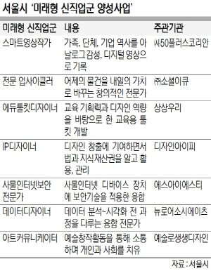 박원순 서울시장은 지난 한 달간의 일자리 대장정을 마친 뒤 특히 ‘청년’의 일자리와 일자리 창출을 위한 해법으로 ‘상생’이라는 답을 찾았다고 밝혔다. 청년들은 이제 기존 직업에 새로운 가치나 분야를 합쳐 새로운 직업을 창조해내며 살길을 모색해 가고 있다. 이를 뒷받침하기 위해 시와 서울산업진흥원(SBA)은 청년실업의 새 해법으로 미래사회 변화를 선도할 신직업 발굴에 주목, 참신하고 실현 가능한 신직업을 제안한 총 7개 주관기관과 협약을 맺고 7개 신직업에 대한 ‘미래형 신직업군 양성사업’(표 참조)을 시작했다. 이를 통해 시는 민간기관과 손잡고 향후 5년간 70개의 직업을 발굴·육성해 새로운 일자리 풀을 확보하기로 했다. 내년에는 신직업군의 허브 역할을 할 전담조직 ‘신직업연구소’도 문을 연다.