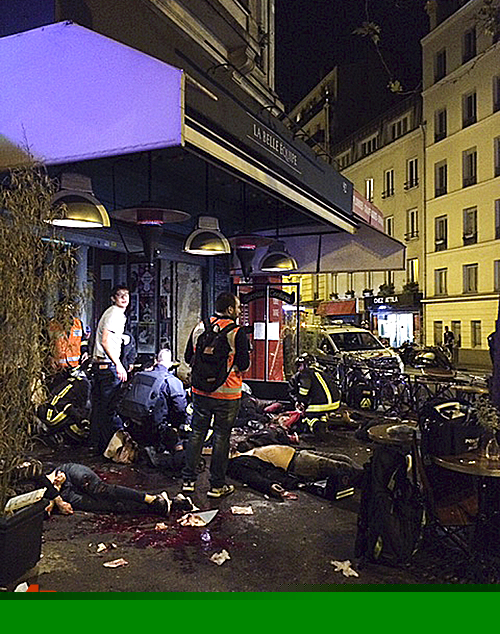 사건 발생후 지하디스트 활동 감시웹사이트 SITE는 “ 파리가 불바다가 됐다. 칼리프가 프랑스를 공격했다”는 메시지가 올라왔다고 전했다. 따라서 이번 연쇄테러는 극단이슬람 무장단체 이슬람 국가(IS) 또는 지하디스트 세력이 벌였을 가능성이 높다. 프랑수아 올랑드 프랑스 대통령은 이날 국경을 일시 폐쇄하고 비상사태를 선포했다.