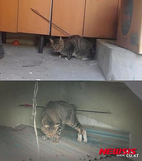 경찰은 고양이에게 화살을 쏜 범인을 추적 중이다. 전문가들은 “사선으로 꽂힌 화살로 보아 근거리에서 조준 발사했을 것”이라고 본다. 살아있는 동물을 조준한 고의적 행위는 1년 이하의 징역이나 1000만원 이하의 벌금형에 처하는 범죄다.