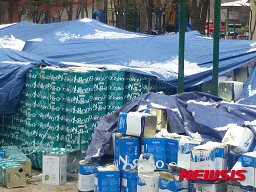 경찰 수사결과 N페인트 업체가 지난달 13일부터 현재까지 납품한 페인트 2000여통 중 1000여통이 빈통이었다. 이 업체는 입주자들이 잘 다니지 않는 새벽 6시 30분께 페인트 납품해왔던 것으로 알려졌다.