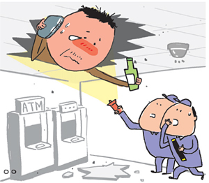 출동한 경찰관들이 장난 신고인 것 같아 현장을 빠져나오려던 순간, 은행 천장에서 이상한 소리가 들렸다. 위를 보니 현금자동인출기(ATM) 바로 위의 천장이 사람이 드나들 수 있을 만큼 뚫려 있었다. 서둘러 사다리를 밟고 올라가 천장 내부를 들여다본 경찰은 놀라지 않을 수 없었다. 천장 구조물에 끼여 오도 가도 못한 채 울먹이는 A(43) 씨를 발견한 것.