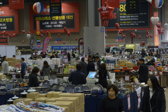 11일 오전 롯데백화점이 경기 고양시 일산 킨텍스에서 개최한 쇼핑박람회 ‘롯데 박싱데이’ 행사장에서 고객들이 상품을 살펴보고 있다.