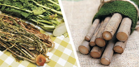 봄 여름 가을 겨울 등 특정 계절의 기운을 가득 머금고 성장한 것을 제철음식이라고 한다. 요즘은 ‘하우스 재배’로 사계절 다양한 채소와 과일을 즐길 수 있지만 제철이 아닌 시기에 나온 농산물은 신선도가 떨어지며 맛도 덜하다. 또 하우스 안에서 키워지면 대기와 땅으로부터 흡수하는 각종 영양소의 비축에도 제약을 받기 마련이다. 여전히 많은 사람이 건강을 생각해 ‘제철 식재료’를 선호하는 것도 그 때문이다. 제철 채소하면 보통 봄이나 여름에만 생산되는 것으로 생각하지만 겨울에도 제철 채소가 있다. 대표적인 것이 무청(왼쪽 사진)과 우엉(오른쪽)이다. 주요 성분과 효능을 알아봤다.