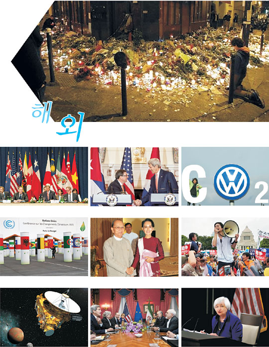 2015년 한 해는 수니파 무장단체 이슬람국가(IS)의 연쇄 테러로 전 세계가 충격과 공포에 빠졌다. 10월 10일에는 터키 앙카라역 광장에서 대규모 자살폭탄 테러로 102명이 숨졌고, 같은 달 31일 러시아 여객기가 이집트 시나이 반도 상공에서 폭발로 추락해 탑승자 224명이 전원 사망했다. 11월 13일 프랑스 파리에서는 IS 소행의 연쇄 테러가 벌어져 130명이 숨졌다.