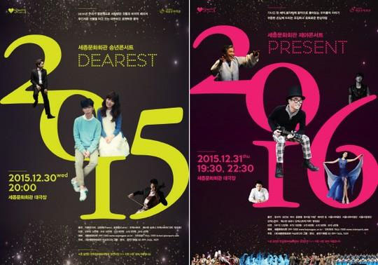30일 오후 8시 먼저 무대에 오르는 ‘송년콘서트 ‘Dearest 2015’는 사랑을 주제로 감성 짙은 음악을 선보인다. 피아니스트 김정원, 첼리스트 송영훈, ‘악동뮤지션’이 오케스트라와 함께 무대를 꾸민다. 한국인 최초로 슈베르트 전곡을 녹음해 ‘슈베르트 마스터’로 불리는 김정원은 이번 무대에서 ‘모차르트 피아노 협주곡 21번 C장조’를 들려준다. 송영훈은 ‘하이든 첼로 협주곡 1번 C장조’를 연주한다. SBS ‘K팝스타’를 통해 대중적으로 알려진 악동뮤지션은 ‘얼음들’, ‘자하철에서’, ‘200%’ 등 직접 작곡·작사한 곡들을 들려줄 예정이다. 이번 무대 연출은 서울시뮤지컬단 김덕남 단장이, 연주는 웨스턴심포니 오케스트라가 맡았다.