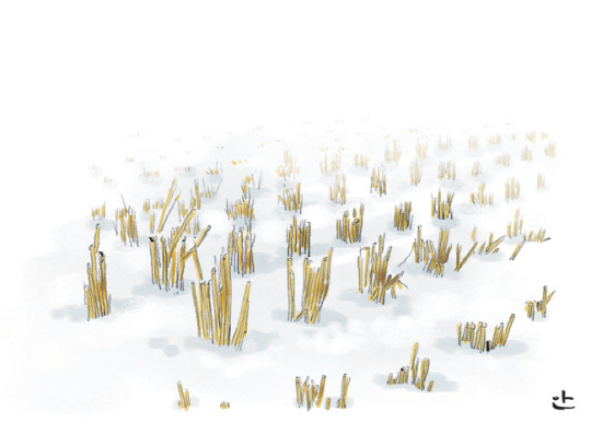 겨울 내내 그루터기가 물고 있는 것은 살얼음 속의 푸르던 날