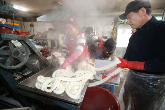 가래떡 뽑기 분주한 방앗간