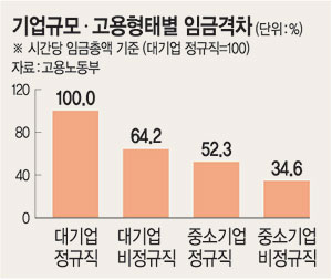 정부가 대기업·정규직과 중소기업 비정규직 간 이중구조를 해소하기 위해 임금격차·근로조건 축소와 원·하청 관계 개선 등 대책에 나선다. 중소기업과 비정규직 문제를 해결하지 않고서는 청년실업 문제를 해소할 수 없다는 판단에서다.