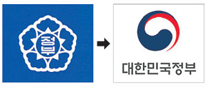 문화체육관광부는 15일 국무회의에서 새로운 정부 상징 디자인(안)을 보고하고, 행정자치부와 공동으로 3월 중 ‘정부기에 관한 공고’ 등 관련 규정을 개정, 이르면 5월부터 순차적으로 정부기관에 적용할 예정이다.