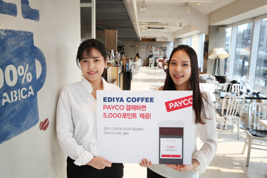 간편결제 페이코(PAYCO) 서비스를 진행 중인 NHN엔터테인먼트는 5일 오프라인 가맹점 ‘이디야커피’ 결제 이용자를 대상으로 5000점 포인트 지급 프로모션을 진행한다고 밝혔다. 이디야커피는 전국 1800호점이 넘는 가맹점을 보유한 카페 프랜차이즈로 3월 페이코 결제 전용 단말기를 전 점에 배치, 근거리통신(NFC) 터치 방식의 오프라인 간편결제를 적용했다.