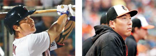 볼티모어의 김현수(28·오른쪽)는 출전하지 못했다. 김현수는 경기 전 “벤치에서 많이 보고 배워 기회가 오면 실력을 증명하겠다”고 밝혔다. 그러나 일부 볼티모어 팬들은 선수 소개 때 김현수가 등장하자 야유를 퍼부었다. 김현수를 밀어낸 조이 리카드는 9번 타자 겸 좌익수로 선발 출전해 4타수 2안타를 쳤다.