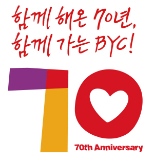 이번에 선보인 슬로건과 엠블럼의 메인 콘셉트는 ‘함께(Together)’다. 슬로건 ‘함께 해온 70년, 함께 가는 BYC!’에는 BYC 70년 역사를 바탕으로 업계를 선도하겠다는 의지를 담았다. 엠블럼의 숫자 ‘7’에는 보라색, 주황색, 빨간색을 사용해 고객과 BYC 임직원, 점주의 화합과 조화를 표현했다. 숫자 ‘0’의 서체에는 BYC 고유 컬러인 빨간색에 하트를 접목해 사랑으로 다가가고, 사랑받는 기업이 되겠다는 의미를 담았다. 창립 70주년 기념 엠블럼은 한 해 동안 각종 홍보 제작물에 활용될 예정이다.