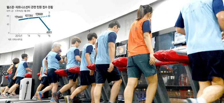 12일 한국소비자원과 관련 업계에 따르면 지난해 한국소비자원을 통해 접수된 헬스장과 피트니스센터 관련 민원은 1만8381건에 이른다. 2년 전인 2013년과 비교했을 때 20% 가까이 증가한 수치다. 올해도 1월부터 4월까지 4503건이 접수됐다. 헬스장과 피트니스센터 외에도 골프장과 종합체육시설, 수영장, 테니스장 등에서 회원권 관련 소비자 피해는 해마다 증가하는 추세다.