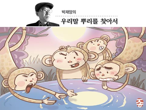 원숭이들도 예외는 아니었나 보다. 원숭이 오백 마리가 석가모니께서 자신들의 마을로 오신다는 소식을 들었다. 그러자 모든 원숭이가 부처님께 꽃을 바치려고 꽃을 구했다. 그러다 보니 꽃이 턱없이 모자랐다. 마을 원숭이들이 모두 모여 앉아 해결책을 의논했으나 뾰족한 수가 없었다. 그러던 어느 달 밝은 날 하늘에 뜬 달을 석가모니께 바치면 좋겠다는 의견을 한 원숭이가 내놓자 모두 기뻐하며 동의했다. 하지만 하늘의 달을 딸 방법이 없었다. 달을 딸 방법을 궁리하던 중 원숭이 한 마리가 호수의 달그림자를 보고 황급히 뛰어가 우두머리 원숭이에게 호수에 있는 달을 건져 석가모니께 바치자고 말했다. 모두 좋은 생각이라며 호수의 달을 건지기 위해 오백 마리 원숭이는 손에 손을 잡고 차례로 호수에 뛰어들었다. 하지만 달은 건지지도 못하고 모두 물에 빠져 죽었는데 이들 원숭이가 사람으로 다시 환생하여 오백 나한이 되었다고 한다.